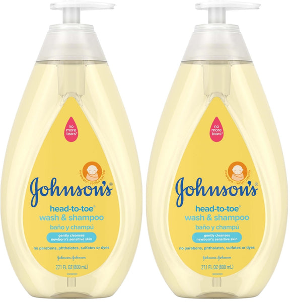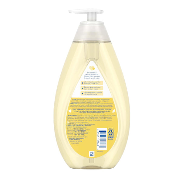 Gentle enough for newborns and good for the whole family, Johnson's Head-To-Toe Baby Body Wash & Shampoo helps make bath time bonding time with your baby. This ultra-mild 2-in-1 baby bath wash & shampoo is pediatrician-tested and pH-balanced to baby skin and washes away 99.9% of germs. Containing over 90 percent ingredients of natural origin,* this sulfate-free baby shampoo and cleanser is gentle enough to cleanse baby's sensitive skin. The Johnson's No More Tears formula makes this baby wash tear-free and as gentle to your baby's eyes as pure water. This baby body wash and hair shampoo contains no harsh fragrances, parabens, phthalates, or dyes & Johnson's does not test on animals. Apply the hypoallergenic baby wash & shampoo with warm water using your hand or a washcloth, gently lather, rinse, and follow with massage using Johnson's Head to Toe Baby Lotion.*Based on average cumulative volume of ingredients in Johnson's Head-To-Toe wash & shampoo, using ISO DIS 16128 (water included).