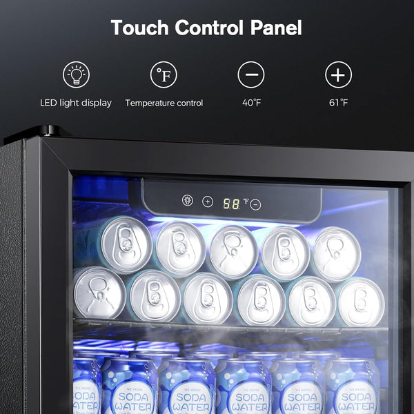- Electronic Temperature Control - The single zone beverage refrigerator has an easy Touch Temperature Control with Digital Temperature Display,exterior Digital LCD Touch Controls temperature from 40 DegreeF to 61 DegreeF to let you keep your wines as cool as your different needs. The powerful compressor based cooling system ensures cool quickly and no noise.