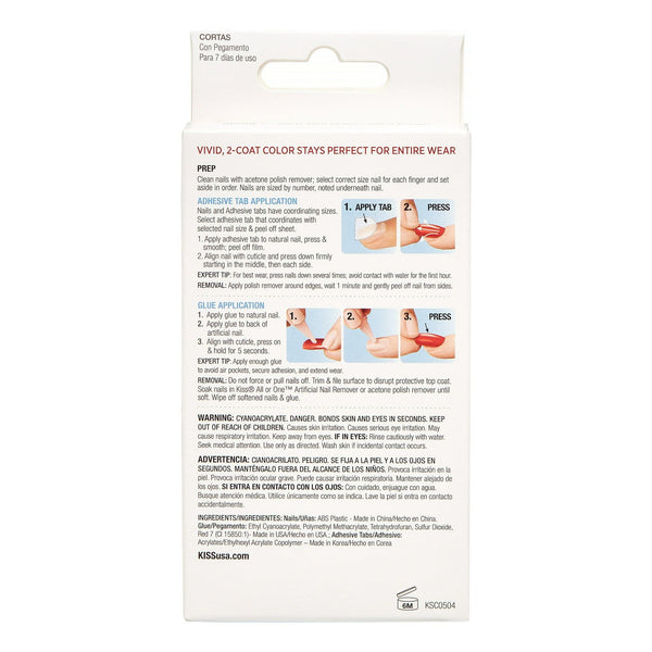 Get a stunning, smudge-free manicure in an instant. Vivid, 2-coat color stays polish perfect for your entire wear with high shine and no chipping. And with both adhesive tabs and glue, you have to two ways to wear to get the most of your color mani. Includes: 28 Nails in 14 sizes, 2 g glue + mega-adhesive tabs, FlexiFit technology for ultra comfort, Up to 7-day wear. Don't settle for everyday fake nails. Glue on and go.