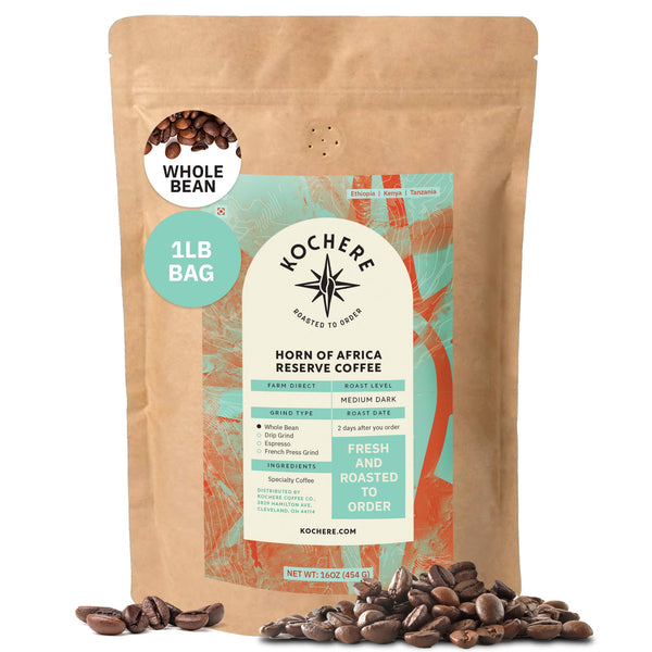 The Horn of Africa Reserve is crafted with espresso in mind and packs a punch with every sip. This medium-dark roast is a truly delicious specialty blend that provides an unbelievable experience for your taste buds that's not too heavy or too light.