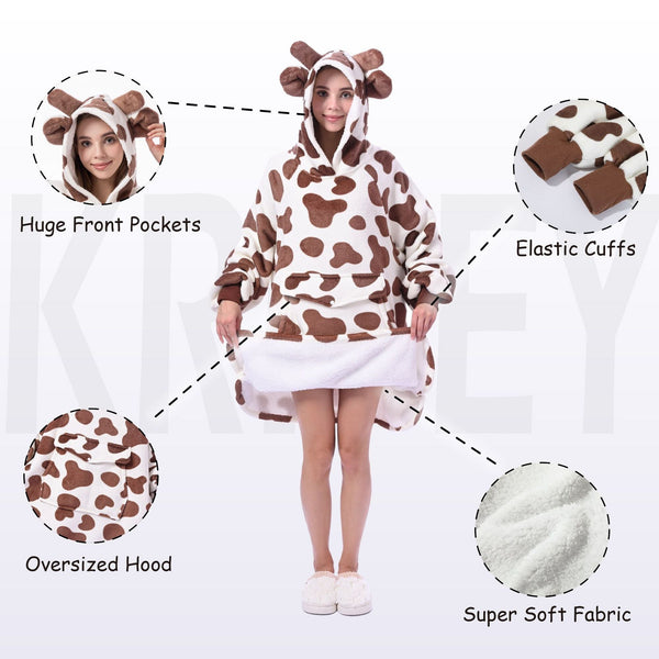 FlannelImportedOversized Blanket Hoodie: Krifey wearable blanket hoodie will keeps you warm and cozy while you are lounging, watching TV, gaming, reading, napping, camping or outdoor activities.Ultra Soft & Luxurious: Made with 100% soft fleece and fluffy Sherpa for a soft touch. This blanket is also OEKO-TEX certified, meaning it does not contain any harmful substances or chemicals to ensure quality comfort and wellness.Unique Design: One size fits all, the snaps on the hood for a more comfortable fit. A big pocket to hide the TV remote, phone, snacks, and more with ease of access. You can pull your hands inside and take your warmth wherever you go.Perfect Gift: For moms, dads, wives, husbands, sisters, brothers, cousins, friends & students on Mother’s Day, 4th of July,Father’s day, Hanukkah, Thanksgiving,Christmas, Easter, Valentine’s Day, New Year’s Eve, birthdays, bridal showers, weddings, anniversaries, team gifts, back to school, graduation & prime gifts. this hoodie blanket will bring them infinite warmth and love.Easy Care: Machine washable long wearable blanket in cold water, tumble dry on low heat, no ironing or expensive clean