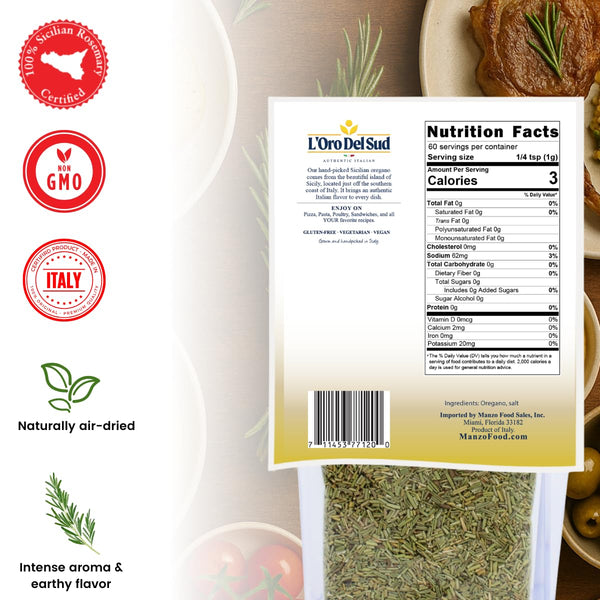 All-natural, non-GMO, and free from additives, this premium rosemary delivers pure Italian flavor in every pinch. Its piney, slightly peppery notes make it an essential herb for Mediterranean and classic Italian cooking.