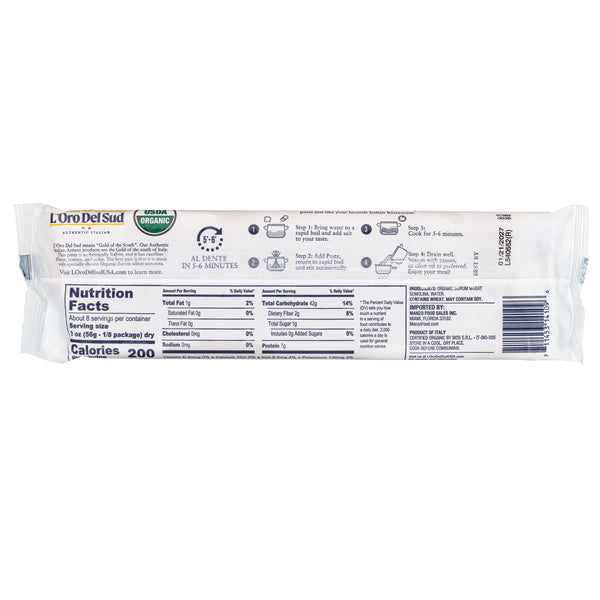 Experience the delicate elegance of L’Oro Del Sud Organic Spaghettini Pasta. Made from 100% organic durum wheat semolina, this thinner version of classic spaghetti offers a refined texture that pairs perfectly with light sauces, seafood, or simple olive oil and garlic.