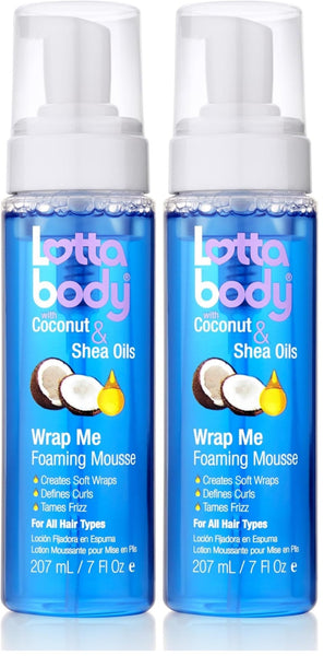 - Combat dry, brittle hair with Lottabody Coconut and Shea Oil Wrap Me Hair Foam Mousse which helps deeply moisturize and transforms dull locks