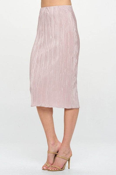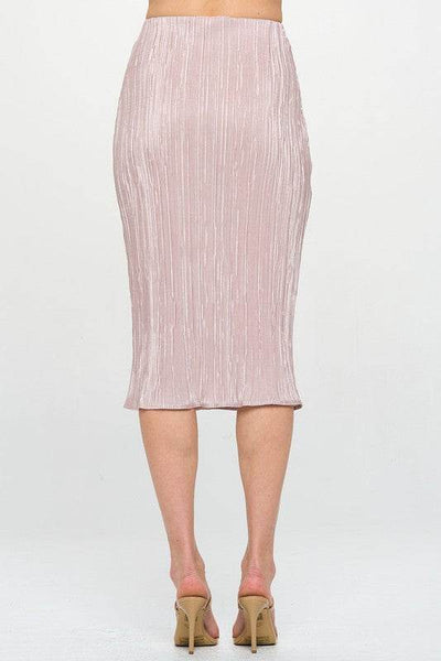 Made in USA Solid Plisse Midi Skirt with Elastic Waistband. Available in other Colors.