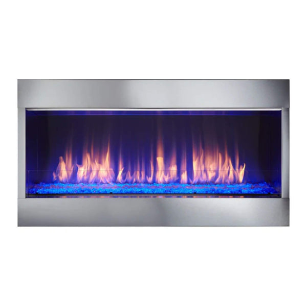With rust-resistant stainless steel construction and easy-to-use wall mount control, this gas fireplace offers both style and function. Enjoy a captivating fire experience, shielded from the elements by the included glass wind guard.