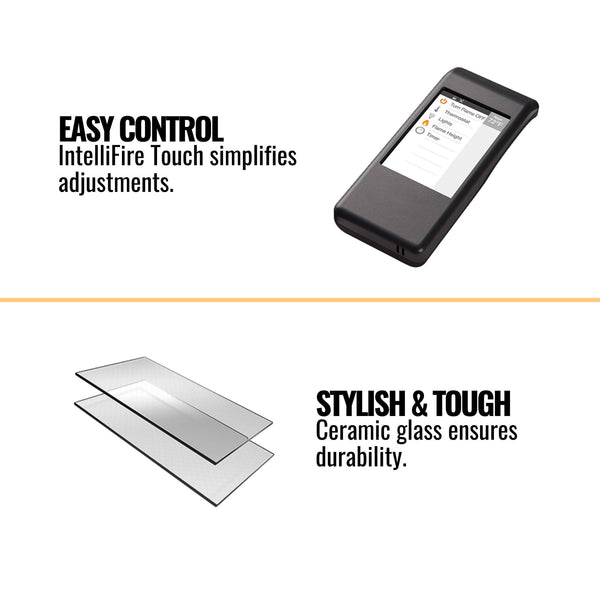 - Control your fireplace with ease using the IntelliFire Touch® system. Whether you prefer a touchscreen remote or a wireless wall switch, this system adapts to your lifestyle, making it simple to adjust settings from anywhere in the room.