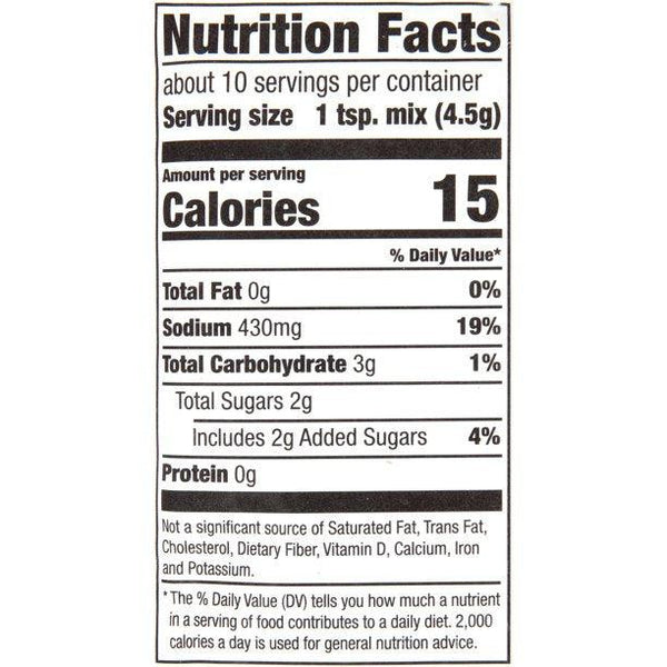Brown Sugar, Salt, Spices (Including Chili Pepper and Thyme), Onion, Garlic, Tomato, Sunflower Oil, Extractives of Paprika & Natural Flavor (Including Hickory Smoke).