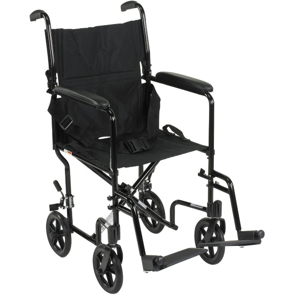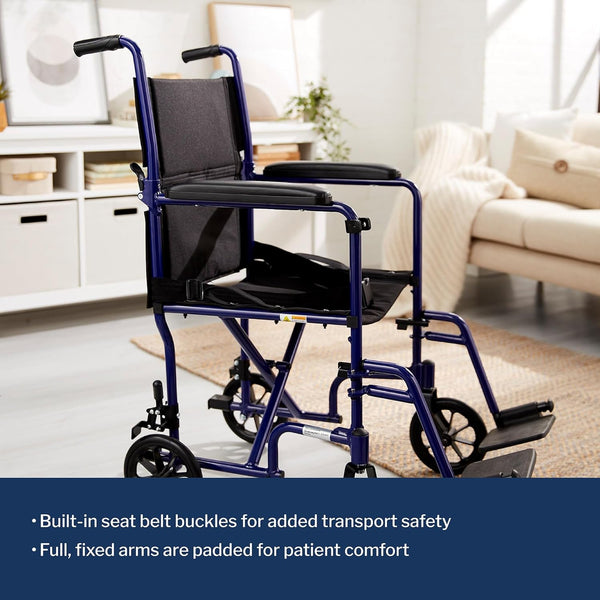 Made from high-quality aluminum, this transport chair is both strong and lightweight, allowing for effortless handling. The 19-inch wide seat with padded armrests ensures a comfortable ride, while the swing-away footrests provide added convenience for users. With 8-inch rear and front wheels, the chair moves smoothly over various surfaces, making it perfect for indoor and outdoor use. The foldable frame allows for compact storage and transport, making it an excellent choice for travel, doctor visits, and daily outings.
