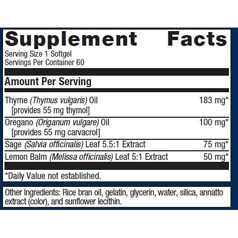 Metagenics CandiBactin-AR 60SG – a little herbal hero in a softgel, crafted to promote overall body's natural defenses and digestive health with the finesse of a maestro conducting a symphony. This robust blend combines the aromatic essence of traditionally revered botanicals like oregano and thyme, delivering a concerted effort to maintain a harmonious balance within the gut environment.