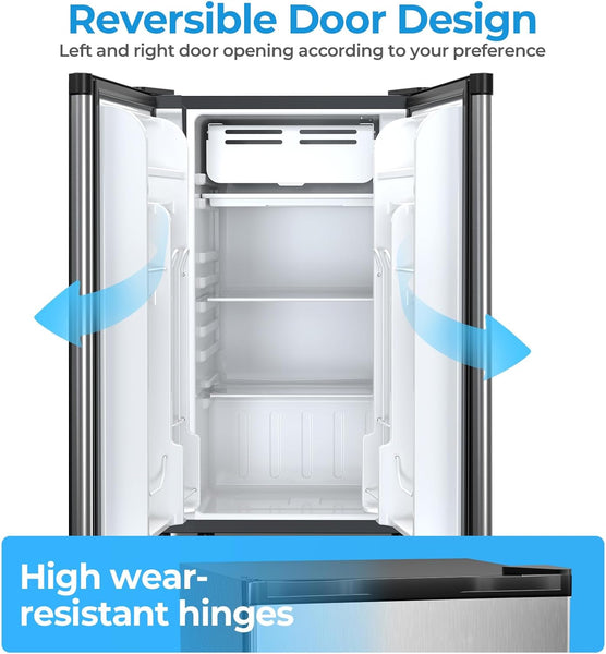 • Size and Capacity-Dimension: 25H*19.29D*17.52W and 2.6 cu.ft capacity. Sufficient space to store snacks, fruits, vegetables and soda.