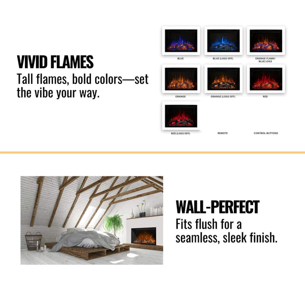 - Effortlessly integrate this electric fireplace into your existing wall with minimal depth requirements, creating a seamless, modern look.
