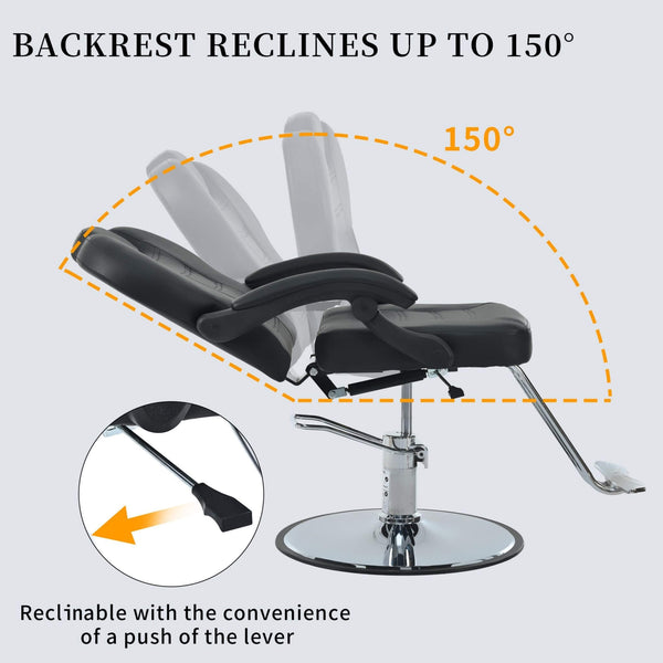 Elevate your salon's aesthetic with this stunning reclining barber chair, designed to merge timeless style with modern functionality. Its sleek silhouette and premium finish promise to create an inviting atmosphere for every client who walks through your door.