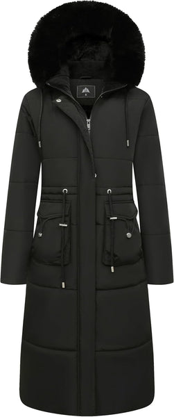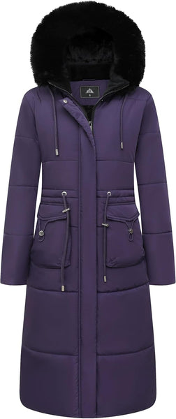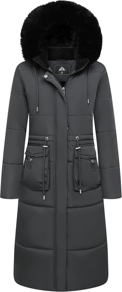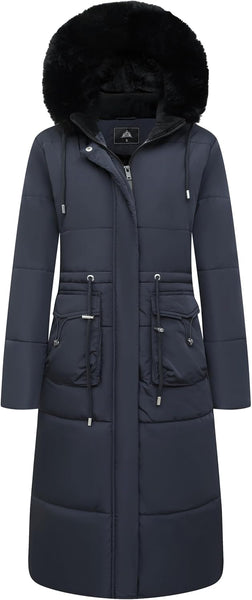 - Warmth Features: The thickened fleece lining and removable faux fur hood keep your face and body warm even in the harshest conditions. The windproof ribbed cuffs and adjustable waist rope effectively prevent cold air from invading. With two front snap pockets and two side hand pockets, this jacket keeps your hands warm too. Stay cozy with this stylish maxi jacket.