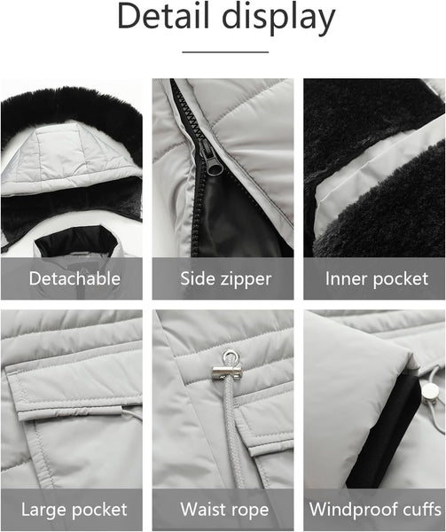 - Practical Design: Featuring a faux fur detachable hood and removable faux fur trim, this jacket gives you the option to switch between different styles. The adjustable features allow you to customize the fit of the hood and waist, providing comfort in inclement weather. Plus, the long length warms your thigh and torso for added protection.