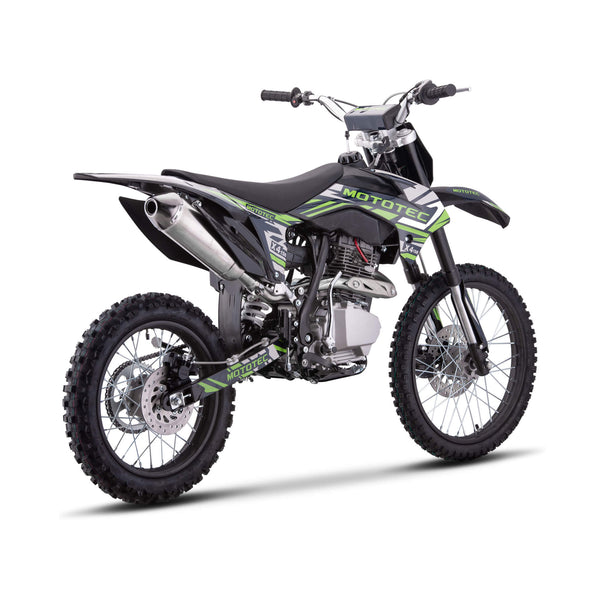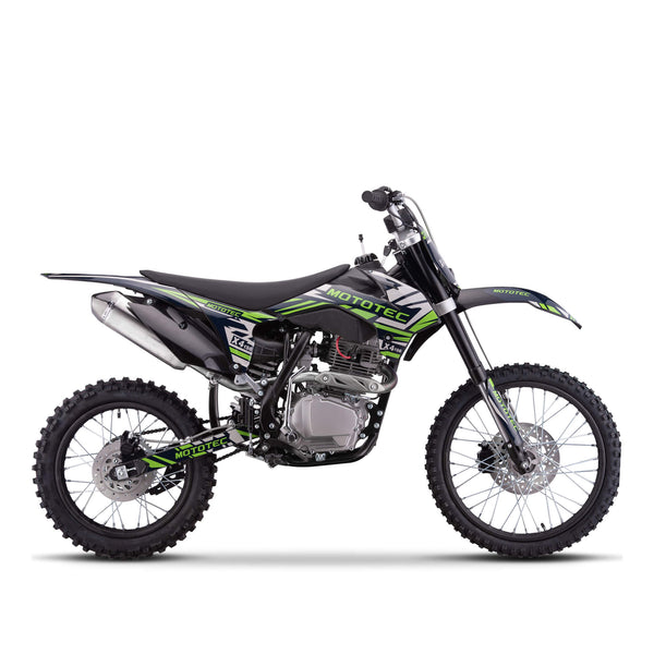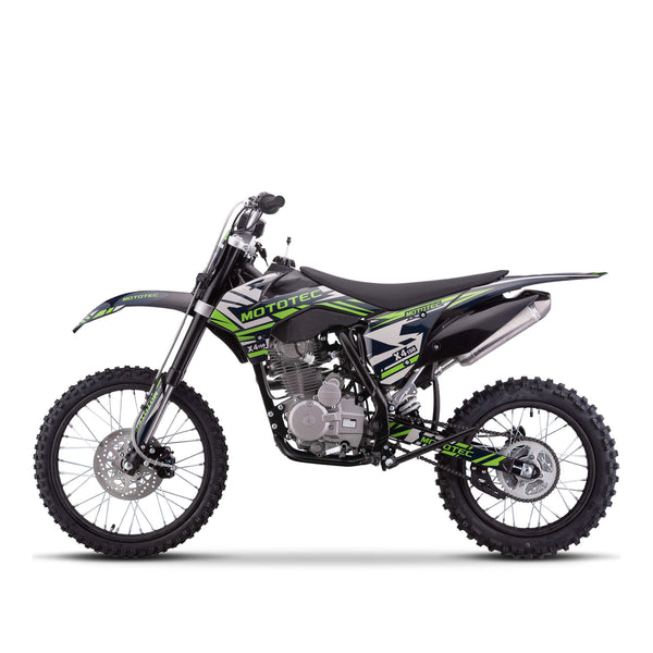Built for durability and designed for action, this dirt bike features a robust, high-tensile steel frame and aggressive knobby tires that grip the dirt for maximum traction. The kick starter ensures a reliable start every time, so you can spend less time tinkering and more time tearing up the trails. Ready to leave the pavement behind and embrace the wild? The MotoTec X4 is your ultimate partner for off-road excitement.