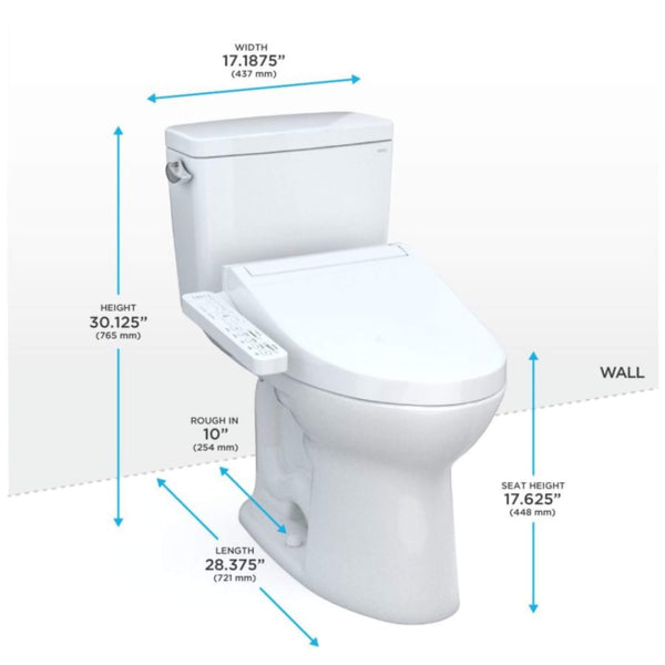 - Enhances personal hygiene via the integrated WASHLET C2 bidet seat, offering warm-water front & rear cleansing, adjustable spray settings, a heated Soft-Close seat and air deodorizer.