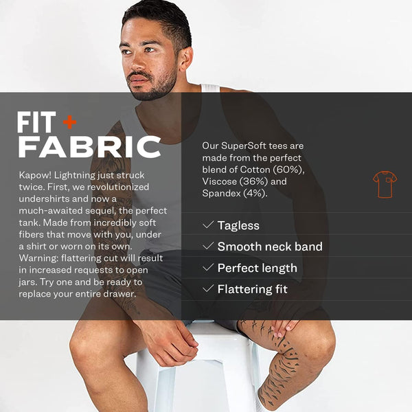- TAGLESS COMFORT: Whether you’re pumping iron or rocking that killer suit, these tag-free tanks for men complement every moment with itch-free comfort. Use them as sleeveless under shirts for men or pair them with shorts for comfy summer loungewear.