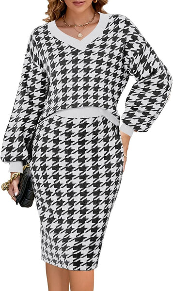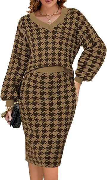 - Women elegant sweater 2 piece outfits set midi skirt dress