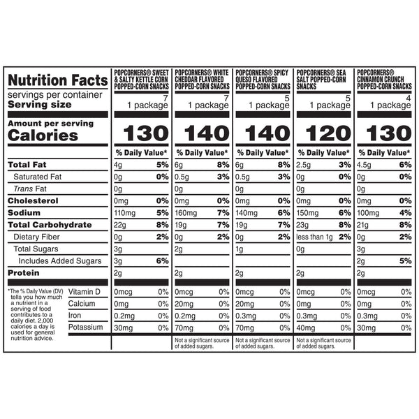- Flavors include Sea Salt, Spicy Queso, Kettle Corn and White Cheddar