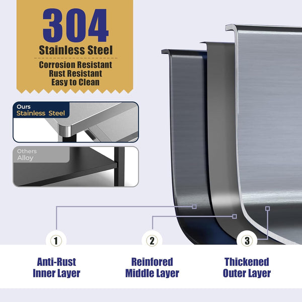 - Sturdy and Reliable: Made from durable 304 stainless steel, the griddle stand resists corrosion and heat for long-lasting performance. It supports up to 330 lbs, providing stable support for heavy grills and equipment. The smooth surface is easy to clean.