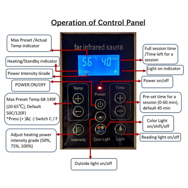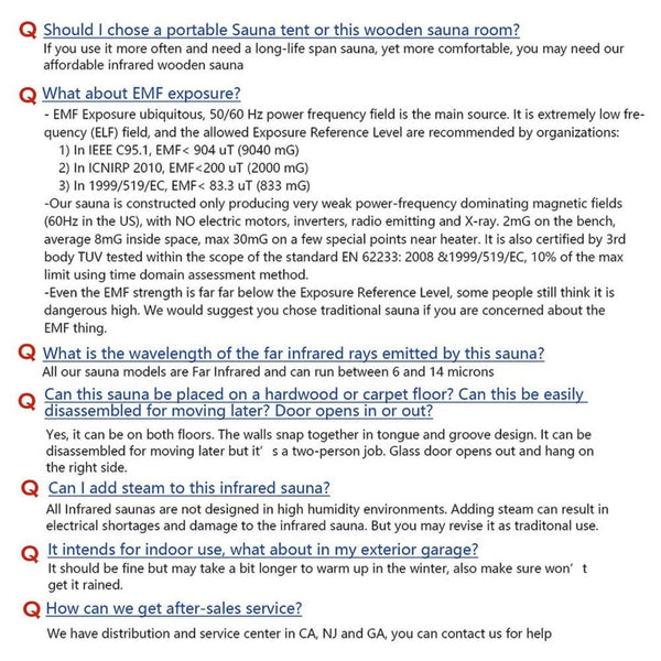 Crafted with love and precision, our sauna is made of natural cedar wood, ensuring a durable and luxurious experience. But we don't stop there – our sauna also utilizes low EMF infrared heating panels, guaranteeing your safety and comfort during every session. Say goodbye to conventional saunas that leave you feeling dizzy and uncomfortable.