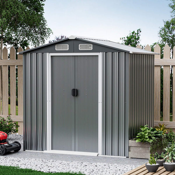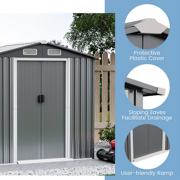 Make room for your outdoor belongings with our Premium Garden Galvanized Steel Storage Shed W/ Lockable Sliding Doors! This 6x4' shed offers ample storage space for all of your garden necessities, providing a perfect solution for your organized storage needs. With reinforced vertical tubes on all four sides and a galvanized steel structure, this steel storage shed is ultra sturdy and anti-rust so you can rest assured knowing your belongings are well-protected from the elements.