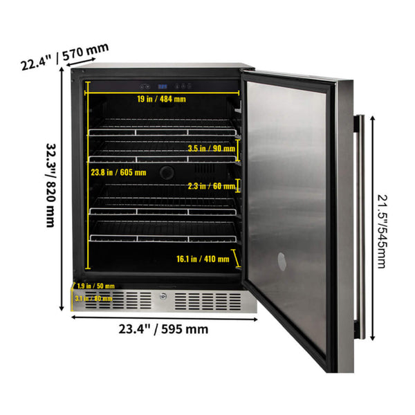 Crafted from premium outdoor-rated 304 stainless steel and boasting IPX4 weather resistance, this undercounter refrigerator stands up to the harshest conditions. Rain or shine, your beverages remain perfectly chilled, thanks to its superior insulation materials that handle extreme temperature fluctuations. Say goodbye to rust and corrosion and hello to long-lasting durability.