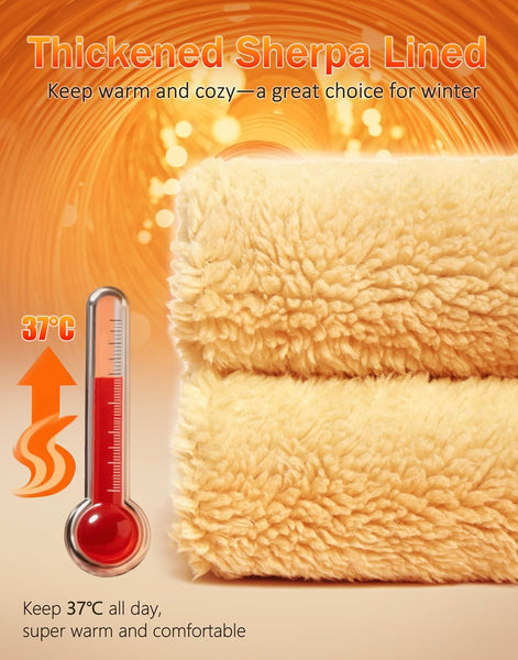 - Extra thick lining: Super thick super soft and warm sherpa fleece liend fabric, which not only effectively fights off the cold, but also provides long-lasting warmth to your body