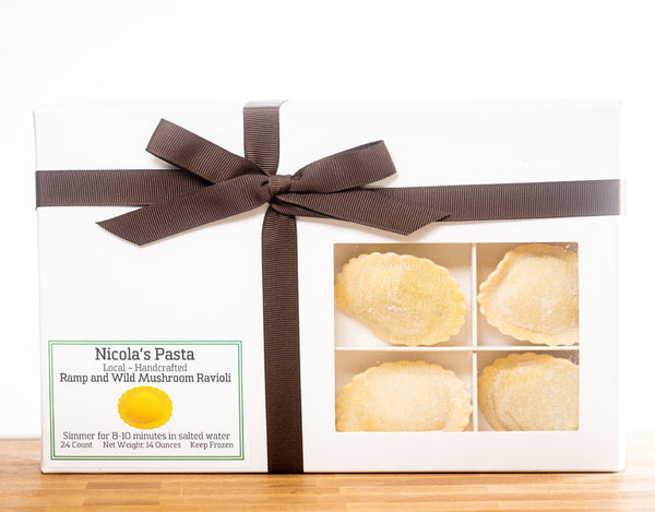 ##0##Wow, your vegetarian friends with our gourmet and artisanal Ramp and Wild Mushroom Ravioli. It is egg pasta filled with foraged ramps, wild mushrooms, and fresh goat cheese. It is extremely nutritious and tremendously drool-worthy. We only use organic unbleached semolina flour that is imported directly from Italy. The eggs come from local farms, and the goat cheese is tender and fresh. Taste this ravioli and get ready to be transported to Italy. You could rest assured of the freshness and natural quotient. It’s made fresh to order and flash-frozen to preserve freshness without using any preservatives.