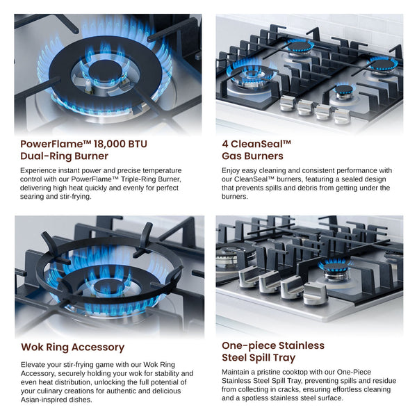 Experience instant power and precise temperature control with our PowerFlame™ Dual-Ring Burner, delivering high heat quickly and evenly for perfect searing and stir-frying.