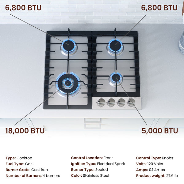 Number of Burners | 4 | Product Weight (lb.) | 27.6 lb |