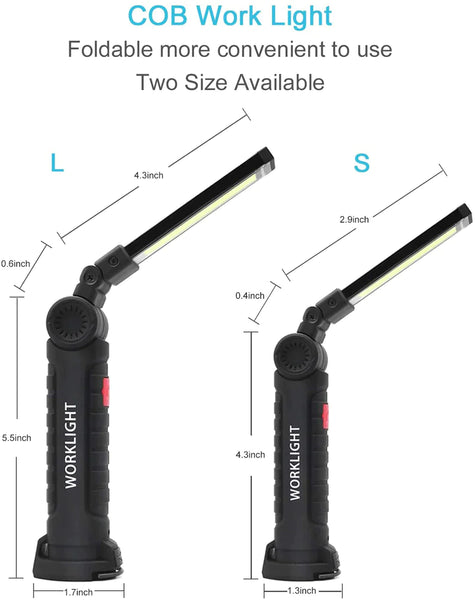 - 🔦【Waterproof And Widely Used】Water-resistant, ensure the emergency light works fine on rainy or snow days. the COB work light is perfect for car repairing, emergency, camping, traveling, hiking, Fishing, CNC lathes, maintenance, workshop, garage, power outages, home lighting, work at night and working under the hood. (Please do no submerge into water)