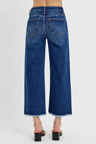 Raw Hem Wide Leg Attached Buckle Jeans are a unique and stylish pair of jeans that feature a wide-leg silhouette with a raw, unfinished hem and attached buckle details. The wide-leg style offers a relaxed and comfortable fit with a trendy and fashion-forward look. The raw hem adds a touch of edginess and a casual vibe to the jeans. The attached buckle details can be used for decoration or as functional elements to adjust the fit or add a unique design element to the jeans. Overall, these jeans are a statement piece that combines comfort, style, and creativity for a fashionable and individualistic look.