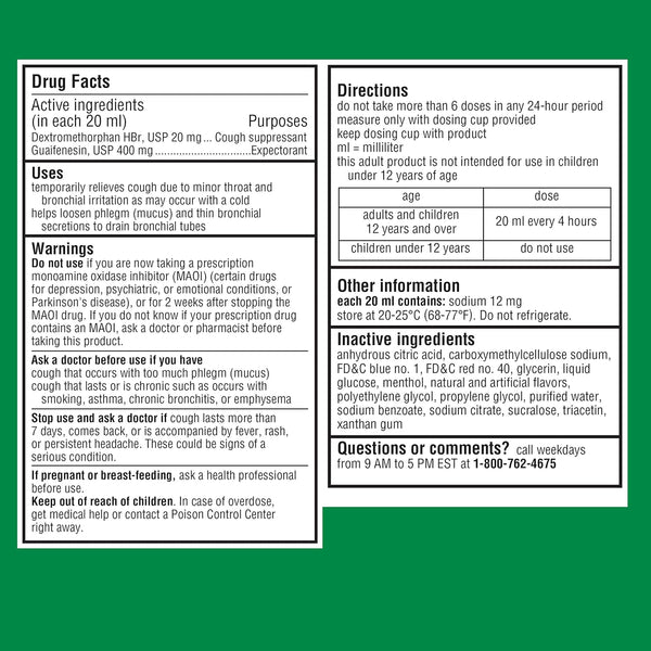 This easy-to-take liquid medicine is ideal for adults seeking effective multi-symptom cough and cold comfort. The balanced formula works to both control coughs and help clear mucus, providing two-in-one support when you need it most. Perfect for use during cold season, after long days of exposure, or whenever respiratory symptoms interfere with rest or productivity.