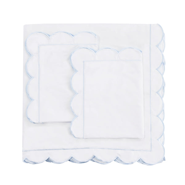 Pairs with Scallop Frame Embroidered Cotton Percale Sheet Set