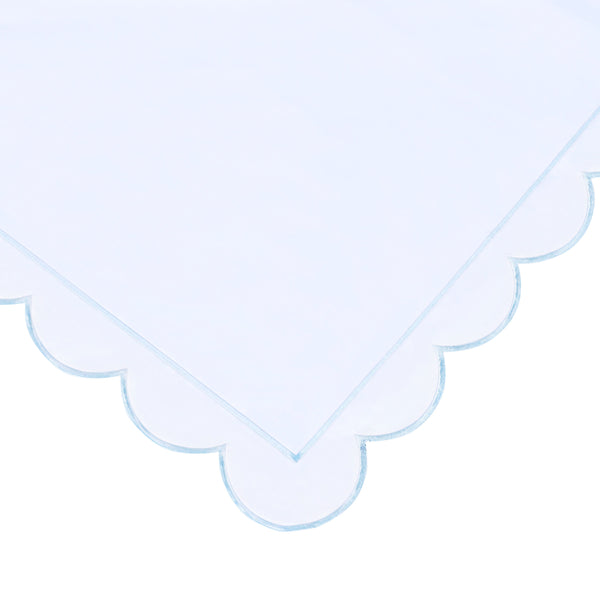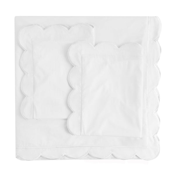 We weave our Percale sheets by laying one warp thread over one weft thread in a one-to-one ratio. This produces a duvet cover with a matte finish that is soft yet durable, crisp and cool to the touch. The single stripe frame is embellished with a scalloped edge for classic luxury and style.