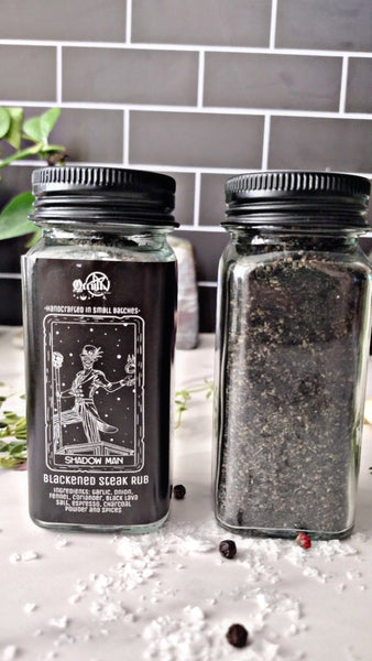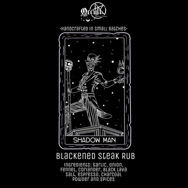 Bold, smoky, and a little mysterious — our Shadow Man Blackened Rub isn’t your average steak seasoning. Crafted with over a dozen hand-selected spices, including Hawaiian black lava salt, espresso, fennel, coriander, and a touch of charcoal powder, this blend was made to bring out the best in rich, hearty meats. Perfect for steak, venison, elk, or any other dark cut you throw on the grill.