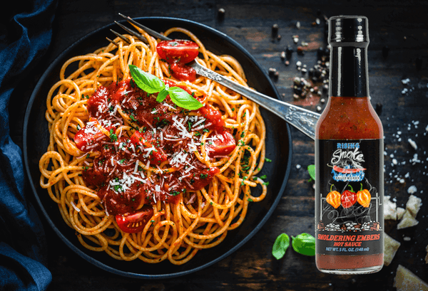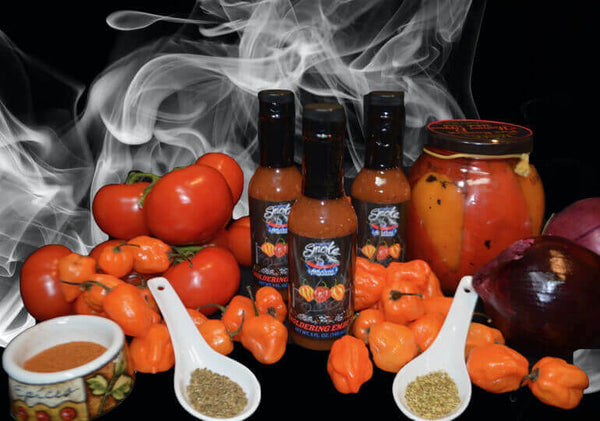 Smoldering Embers is our signature sauce that started it all. A perfect harmony of flavors awaits you, with smoked habaneros stealing the spotlight, balanced by the sweetness of roasted red peppers and the richness of fresh tomatoes. The aromatic blend of basil, garlic, and onions adds a savory touch, creating a versatile sauce that complements both Italian-inspired dishes and smoky Southern BBQ. With its medium heat level, this sauce is an all-purpose delight that can elevate the taste of virtually any meal. From pasta to grilled meats, savor the magic of Smoldering Embers on everything you eat.