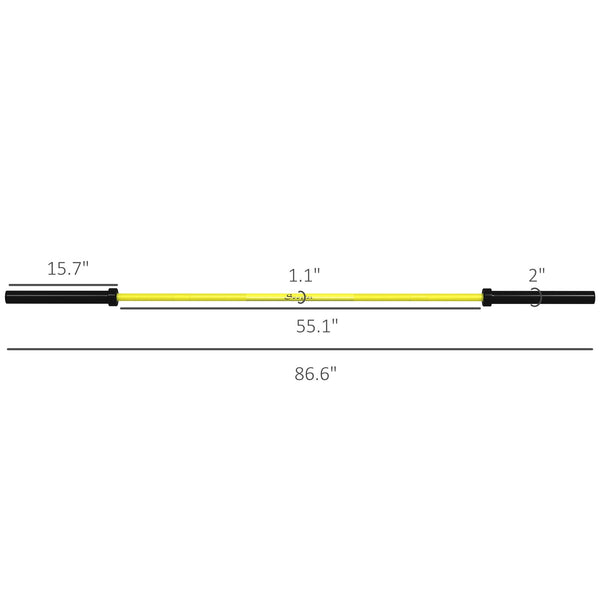 Aim high and lift heavy with the Soozier Olympic bar. This powerhouse will make you a powerhouse with a massive 1500 lbs. capacity. Do bicep curls, squats and bench press. Fitting 2" weight plates and crafted from strong steel it helps push your limits, enduring daily exercise without bending out of shape. Non-slip knurling texture offers the grip needed to hold on and push to that next rep. As you lift the sleeves rotate reducing strain to keep it comfortable. Lift big; score big with Soozier.