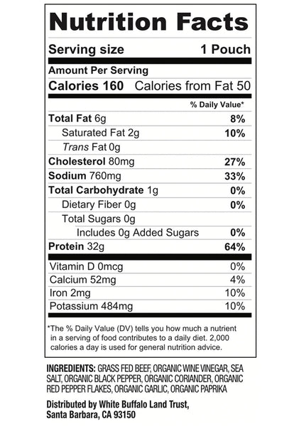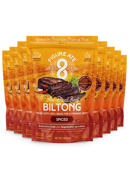 Experience the taste of our award-winning South African style Beef Biltong: crafted from 100% regeneratively sourced, grass-fed, and finished beef, marinated in our signature Persimmon Vinegar and a blend of coriander, peppers, and garlic, then air-dried for unrivaled freshness and a subtle spiced flavor.