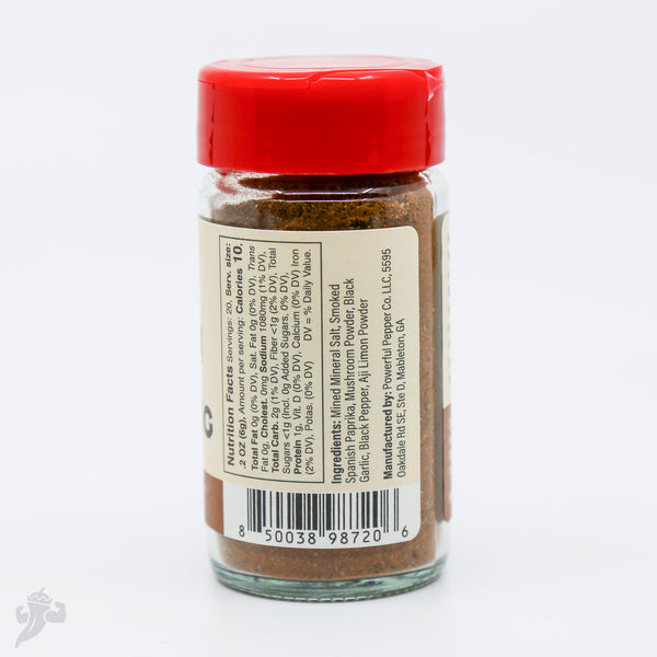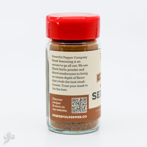 This is a Steak Seasoning that comes at you with bougie vibes and gourmet pedigree. We use top shelf spices to make this in small crafted batches. It has a mined sea salt from Utah that is mineral rich for extra depth of flavor, black garlic from Black Garlic North America in Wisconsin that are renowned for their amazing fermented products, porchini and morel mushroom powders add a layer of flavor that is earthy and does not overpower, but rather compliments the flavor of the meat, and hot smoked paprika from Spain.