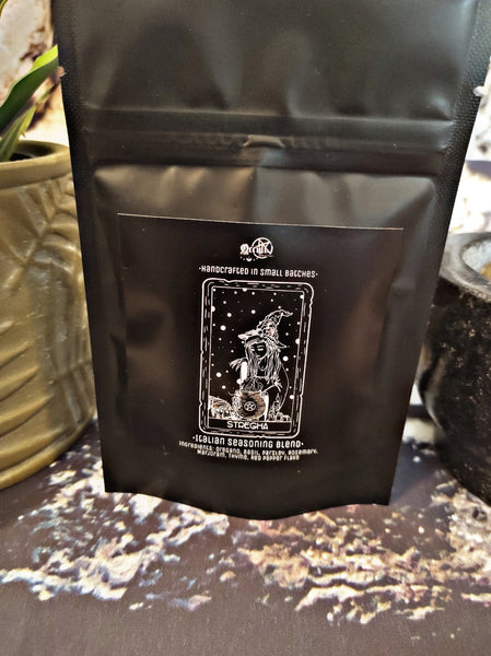 From the hearths of the Old World comes our Stregha signature Italian Blend—an aromatic symphony of oregano, basil, rosemary, marjoram, thyme, and a spark of red pepper. Fragrant, earthy, and timeless, it evokes rustic feasts and slow-simmered magic passed down through generations. Handcrafted in small batches and available in resealable pouches or glass shakers, this blend is the heart of kitchen witchery—simple herbs transformed into everyday enchantment.
