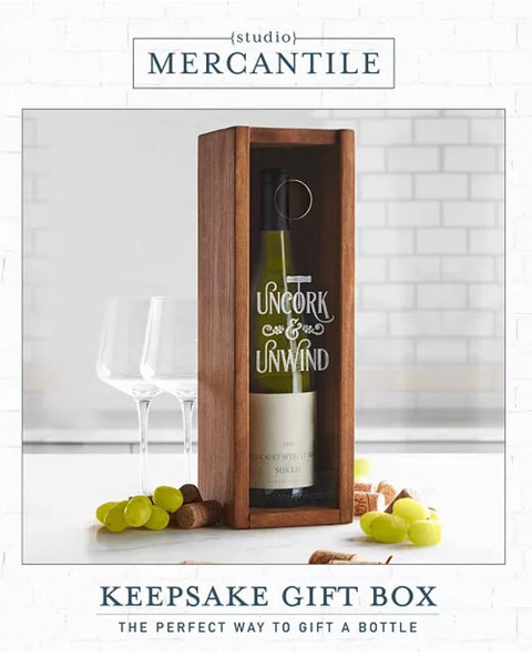 Present your favorite bottle in sophisticated style with the Studio Mercantile Wine Keepsake Box—a beautifully designed gift box that doubles as a decorative cork display. Crafted to accommodate most wine and champagne bottles, this elegant piece features a clear plexiglass front that showcases your collection while securely storing your bottle.