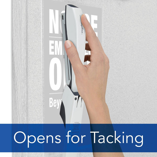 Top cap opens and securely latches at 180° to remain open while reloading staples