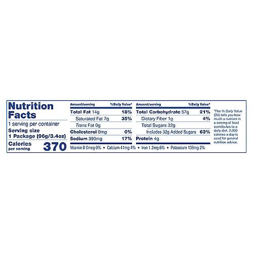 Confectionery Coating (Sugar, Hydrogenated Palm Kernel Oil, Cocoa Processed with Alkali, Cocoa Powder, Whey Powder [Milk], Soy Lecithin, Salt, Artificial Flavor, Unbleached and Bleached Enriched Flour (Wheat Flour, Niacin, Reduced Iron, Thiamin Mononitrate, Riboflavin, Folic Acid), Vegetable Oil (Palm Oil and Soybean Oil), Water, Sugar, Whey (Milk), Contains 2% or Less of Each of the Following: Soy Flour, Leavening (Sodium Bicarbonate, Sodium Acid Pyrophosphate, Sodium Aluminum Phosphate, Monocalcium Phosphate), Glycerine, Nonfat Milk Solids, Dextrose, Salt, Corn Syrup Solids, Wheat Flour, Bleached Wheat Flour, Soy Lecithin, Wheat Starch, Distilled Monoglycerides, Sucrose, Enzymes, Egg Yolks, Guar Gum, Sodium Stearoyl Lactylate, Modified Corn Starch, Artificial Flavor, Whey (Milk) Protein, Propylene Glycol Monoester, Tapioca Dextrin, Xanthan Gum, Corn Dextrin, Karaya Gum, Colored with Turmeric and Annatto, Preserved with Sodium Propionate, Potassium Sorbate and Sorbic Acid.
