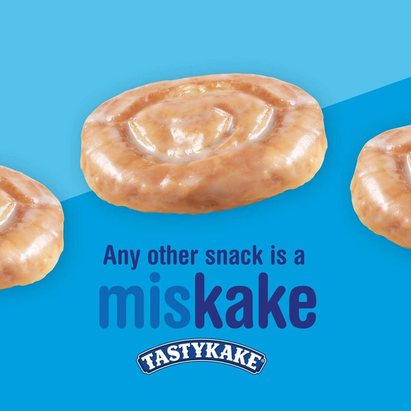 Tastykake® Glazed Honey Buns are crafted with delicious cinnamon and a sweet and silky glaze, making them melt-in-your-mouth delicious. No matter the time of day, these glazed honey buns are always a good idea. Pair these delicious pastries with your morning coffee for breakfast or enjoy in the afternoon for a sweet snack. These family-approved sweet treats are the ultimate pantry staple. Keep Tastykake on hand, because having any other snack is a miskake™.