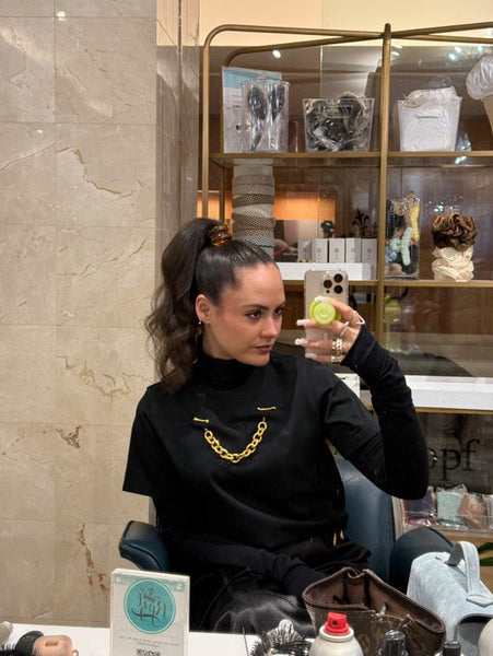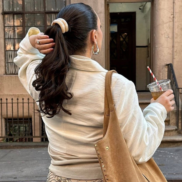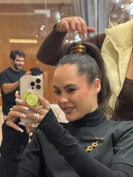Turn heads with The Morgan Stacked Cuff from our collaboration with editor and influencer Bella Gerard. A chunky marble accent that elevates any updo with a flash of luxe shine. Wear one at the base of your pony for a subtler statement, or multiple down the hair for a maximalist feel.