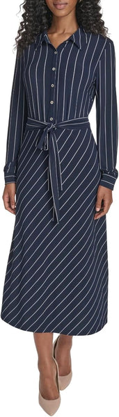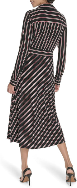 - Features: Long sleeves, collared, bermuda stripe jersey, self tie, midi