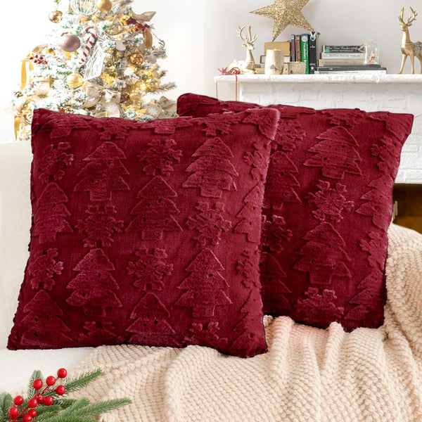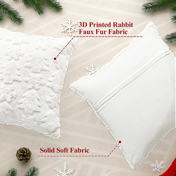 - Comfort with 3D Designs: Set of 2 Christmas tree pillow covers, No Insert or Filler. Pattern is only on the front and no printing on the back. Experience the exceptional softness of our premium faux rabbit fur christmas pillow covers. These 18x18 christmas pillow covers are not only incredibly soft christmas throw pillow options but also feature stunning 3D embroidery with festive patterns like christmas tree and snowflake